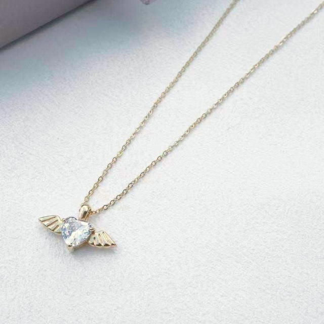 Découvrez la beauté céleste de notre collier en acier inoxydable, orné d'un pendentif en forme de cœur délicatement accompagné de jolies ailes.