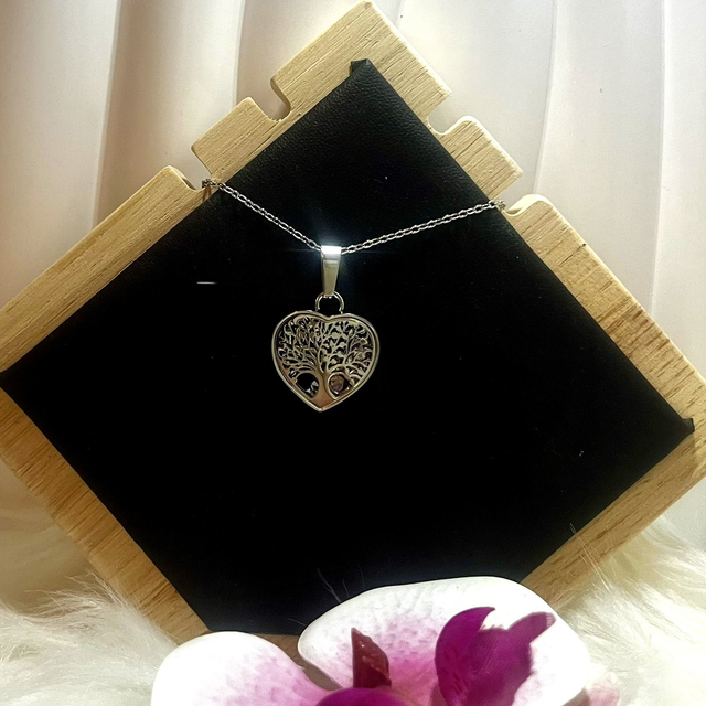 • Pendentif en forme de cœur avec arbre de vie stylisé