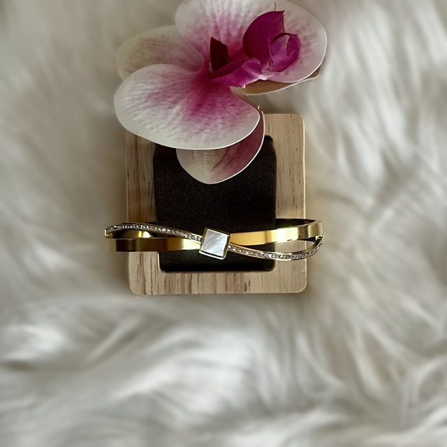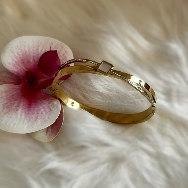 Affirmez votre style avec ce bracelet jonc en acier inoxydable doré, un bijou à la fois chic, minimaliste et résolument moderne.