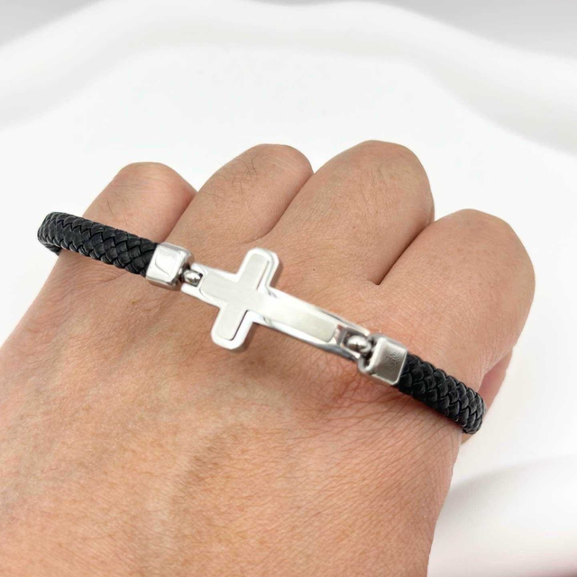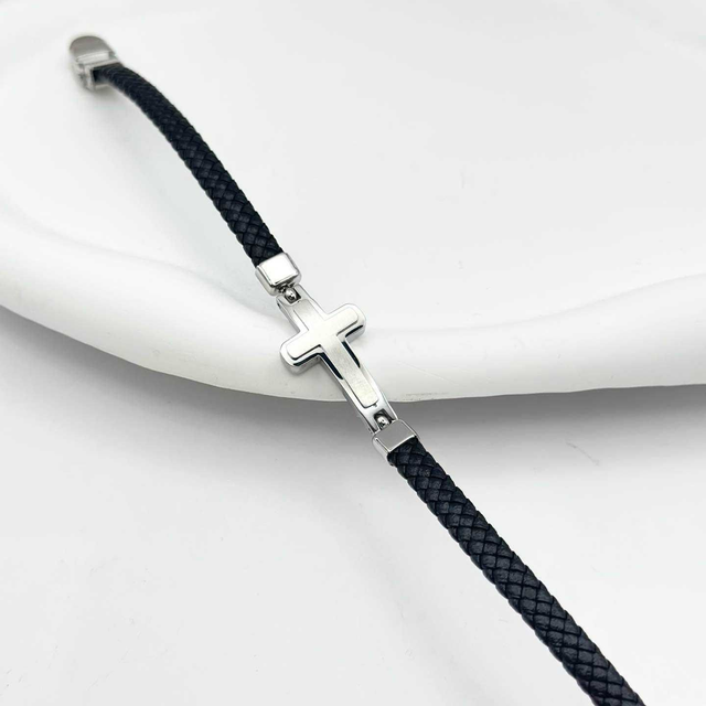 Orné d'une croix en acier inoxydable et d'un bracelet tressé en cuir est parfait pour un look discret mais affirmé .