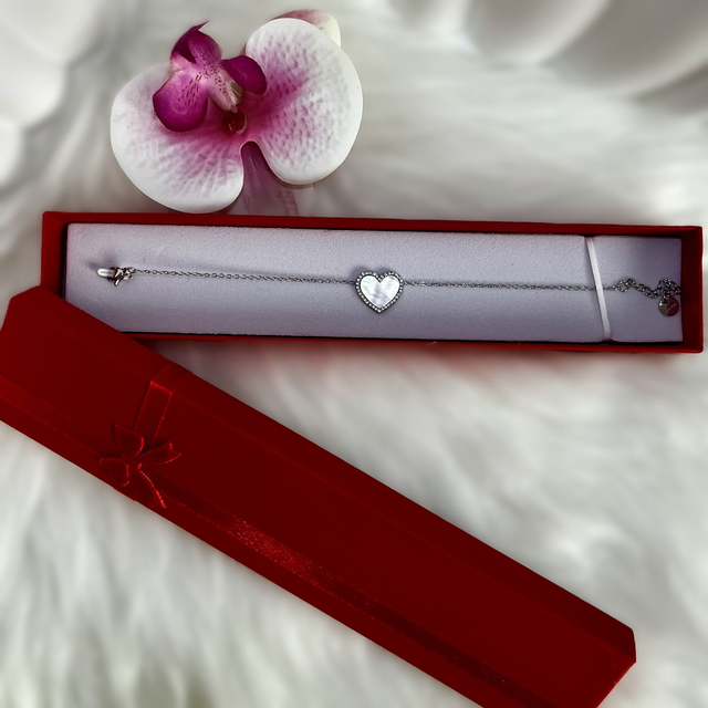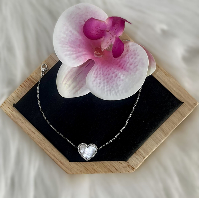 Succombez au charme délicat de notre bracelet Cœur Nacre & Zircons, un bijou raffiné qui allie douceur, éclat et féminité.