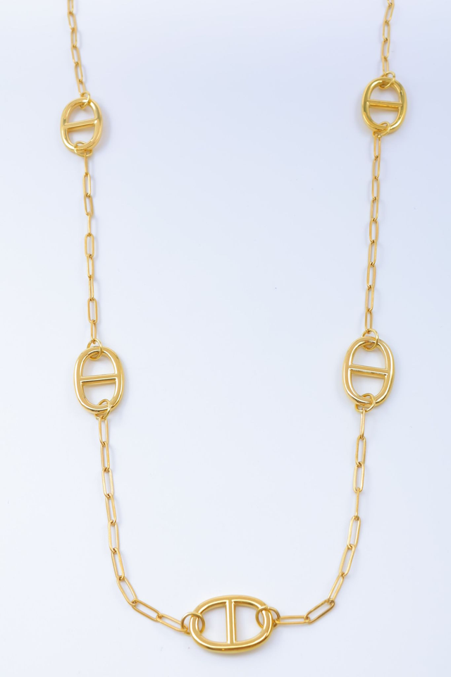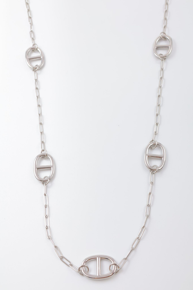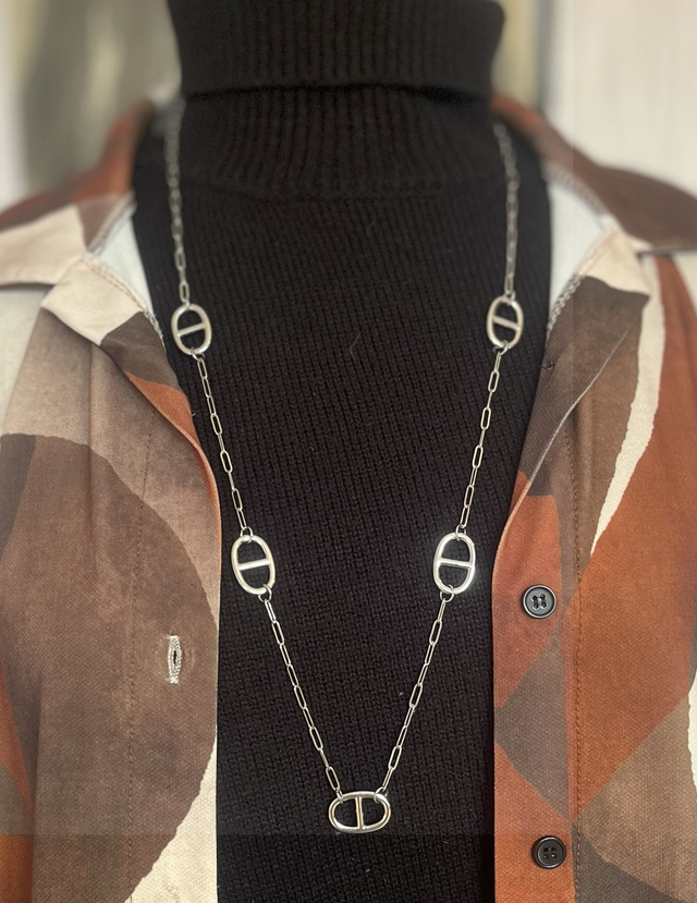 Découvrez notre élégant collier sautoir en acier inoxydable, orné de cinq mailles marines qui allient modernité et sophistication.