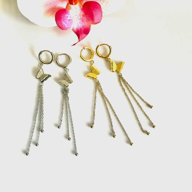 Boucles d'oreilles pendantes en acier inoxydable – Papillon
