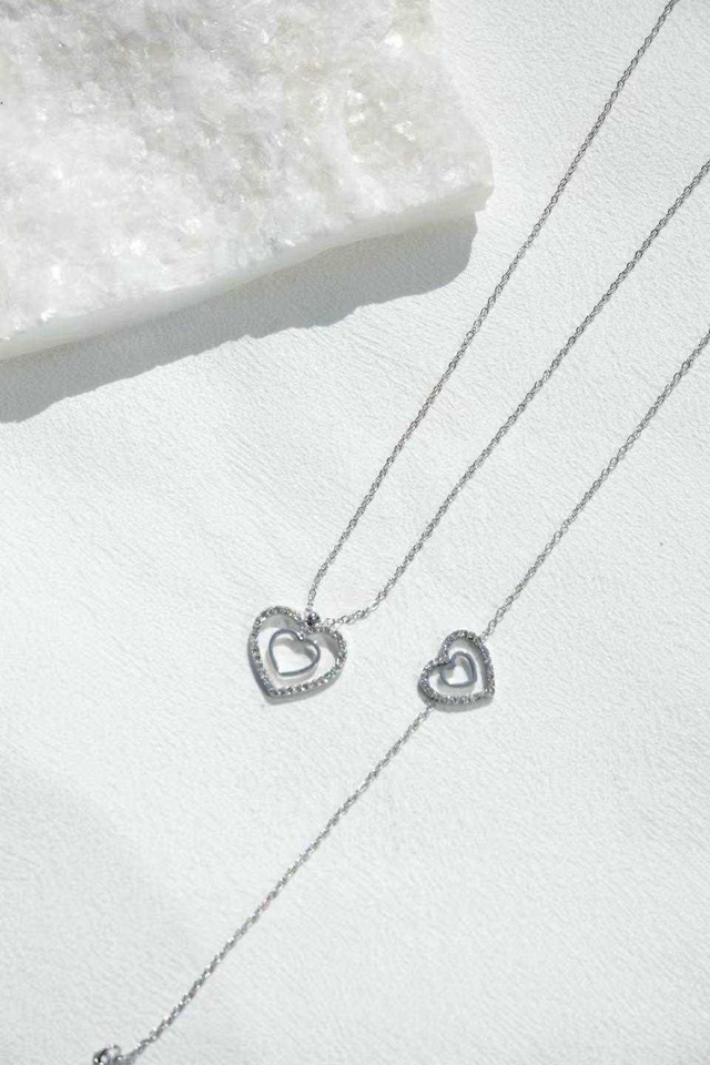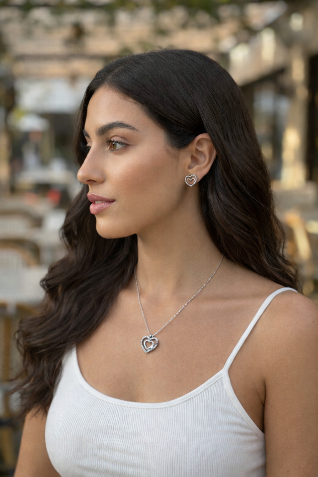 Son pendentif double cœur finement travaillé capte la lumière avec subtilité et apporte une touche raffinée à toutes vos tenues.