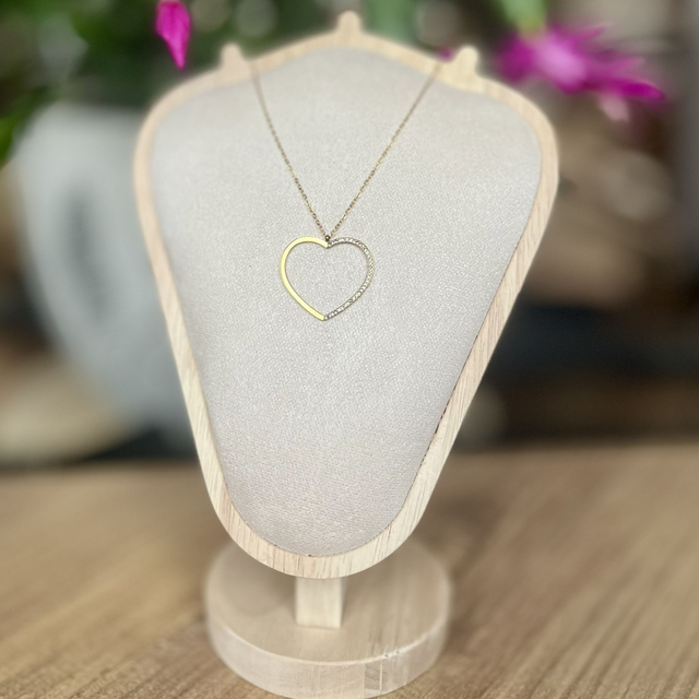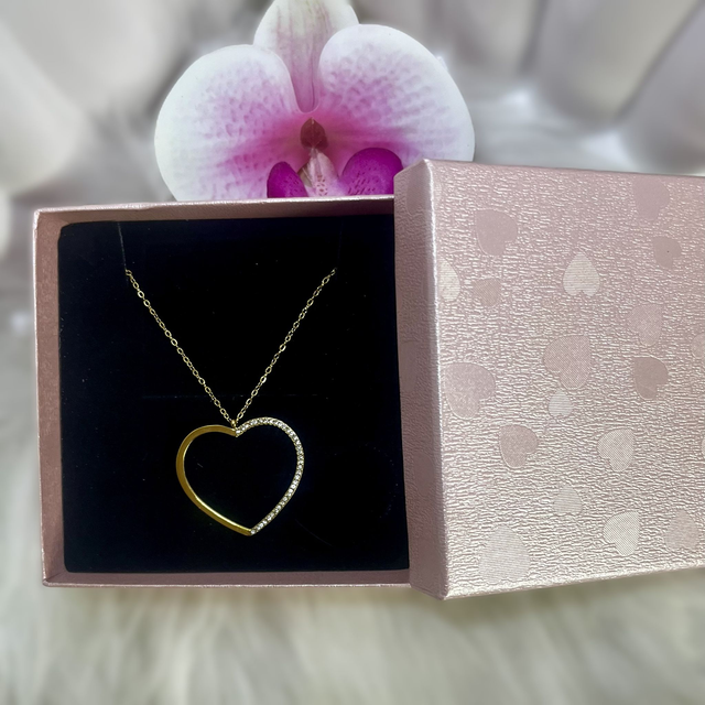 La moitié du cœur est ornée de zircons étincelants, apportant une touche de lumière et d’élégance à l’ensemble.