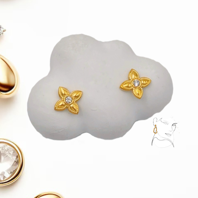 Ajoutez une touche de charme floral à votre collection de bijoux avec nos clous d’oreilles en acier inoxydable doré, élégamment conçus en forme de fleur à 4 pétales.