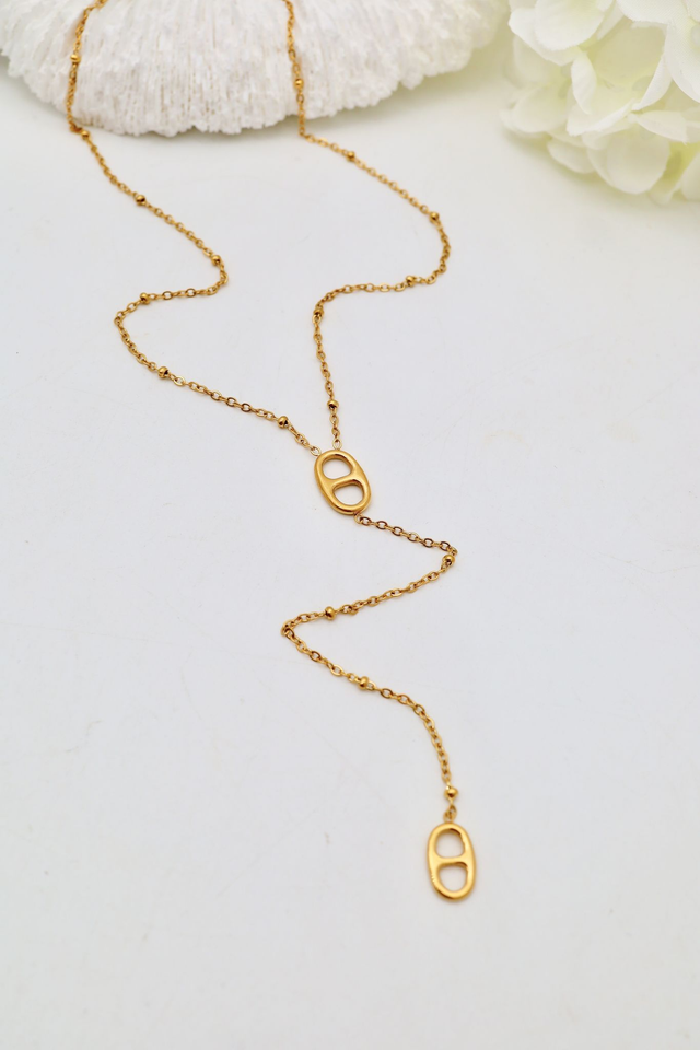 Sublimez votre style avec ce collier Y en acier inoxydable, orné de deux maillons ovales Maille Marine qui apportent une touche d'élégance et de modernité.